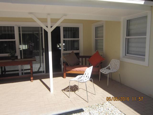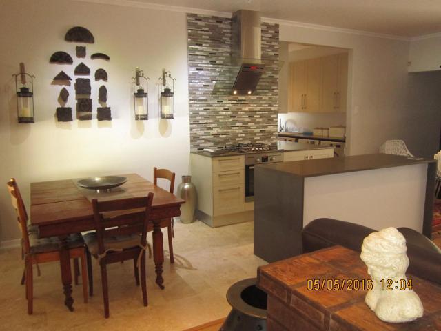 Modern home with Wi-Fi and DSTV at an extra cost per day. Rooms open up onto the stoep. Gas stove with electrical stove. Large gas braai. Guest toilet. Table with 8 Garden chairs. Gardener once a week. Prices are excluding Cleaning and Linen