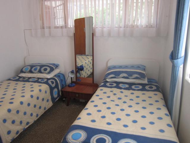 Child friendly home within walking distance to the beach. Separate flat with double bed and 2 single beds, kitchen and bathroom with shower - Can sleep 4 people - No TV in flat. Can be rented separately or as 1 unit. DSTV available at R30.00 per day extra.