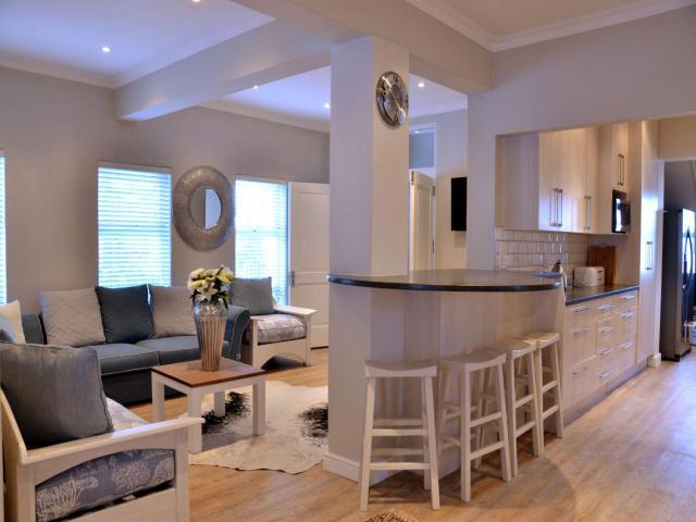 Stunning 5 Bedroom house in Voelklip, Can be rented as whole house or 2 separate apartments. Price listed per night for whole house, enquire for separate use. Both self contained with kitchen and appliances. Prices vary for high/med/low season see prices section or please enquire. Mountain and see views. 10 Min drive to town Center, 5 Min walk to the beach where you can walk for miles. Our nearest beach Grotto is a blue flag beach. Fernkloof Nature Reserve is nearby; great for walking and hiking also mountain biking. The house has lovely gardens with pool, outdoor brick braai area also upstairs gas braai on the balcony and indoor braai.
